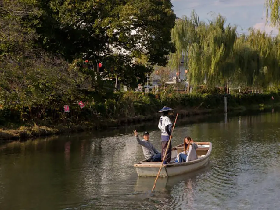 The Nishitetsu Yanagawa Station is only about an hour train ride from Fukuoka city. Once you get here, the best way to explore the intricate network of canals is by foot. Walk along the water and follow the wide and narrow waterways while waving at the small boats passing by. When you're tired of walking, get on a boat and let the expert sendo, the boatman, lead you through the town while he tells you about its history.