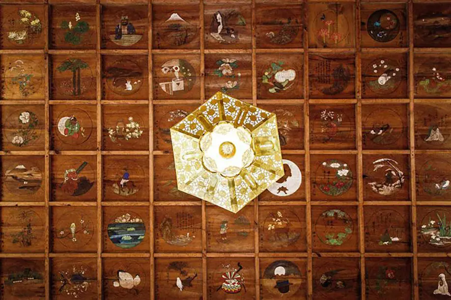 Taking us to the main temple hall, Victoria explained that the folk art paintings adorning the ceiling date back around 100 years, and include the names of donors from that time period.
