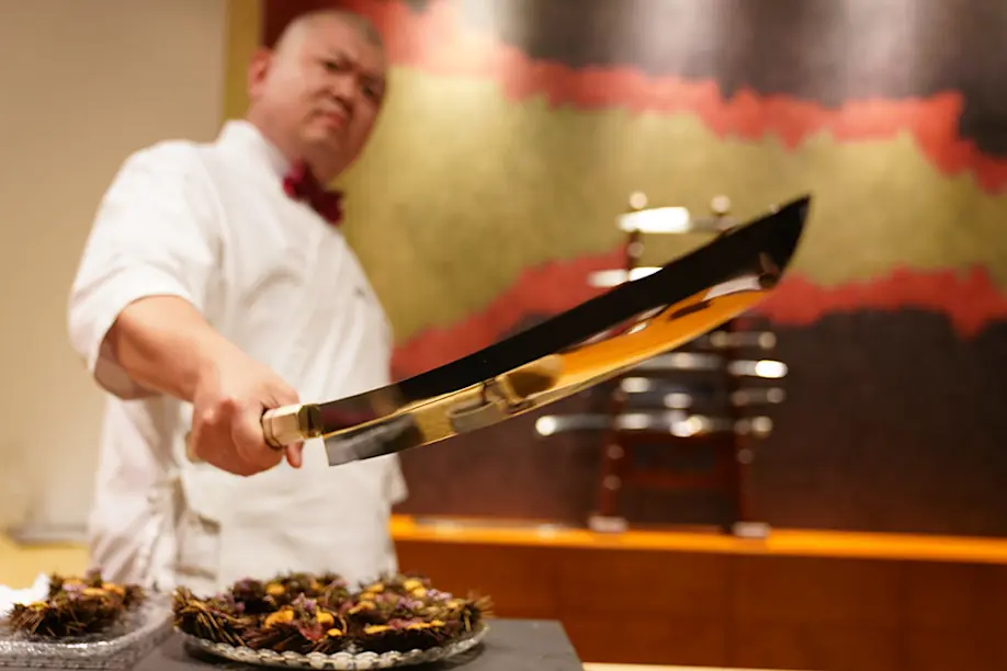 As for his ingredients, Watanabe sources almost all of them locally from the seas surrounding Kyushu, such as his fresh blue crab, which is fished from the nearby ocean. He also uses his masterful skills to slice up squid into incredibly thin, fine strips of meat. Other local ingredients for Teruzushi's sushi menu include surf clams and tiger prawns. To get the finest ingredients, Watanabe makes a daily early-morning trip to the local fish market to ensure his daily meals are consistently fresh.