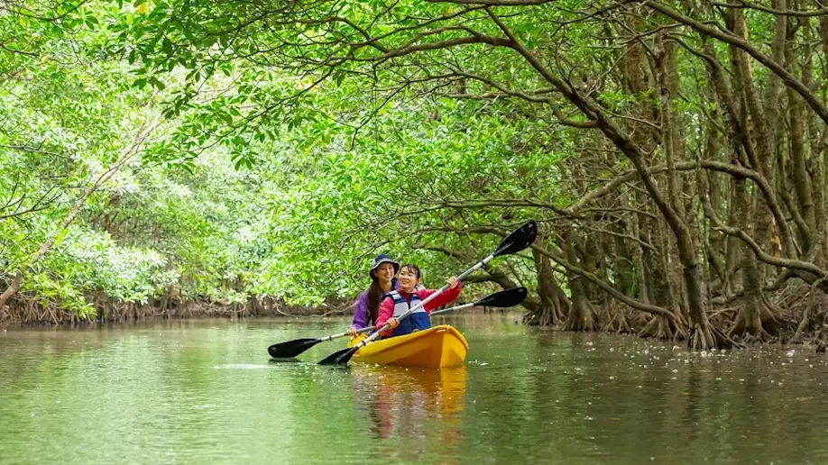Canoeing, boating, and kayaking through the mangroves and thick jungle waterways are popular activities. Iriomote is popular with scuba divers at Manta Way, a strait between Iriomote and Kohama Island, known for its annual congregation of manta rays each spring and summer. This registered dark sky area also comes to life at night for unparalleled stargazing. From February to April, native Yaeyama fireflies light up the forests.