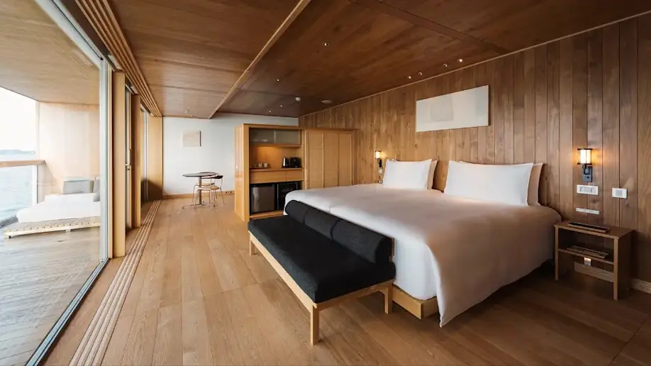 Also in Setouchi, travelers can visit Hiroshima and hop aboard guntû, a floating hotel. A cross between a ship and a ryokan, this one-of-a-kind lodging and gourmet experience launched in 2017. The vessel boasts 19 luxury cabins and was designed so that passengers can have the sea in view at all times. guntû sets sail from Onomichi in Hiroshima, granting easy access to the Seto Inland Sea, full of islands to explore. There are seven to eight sailing routes, ranging from two to three nights.
