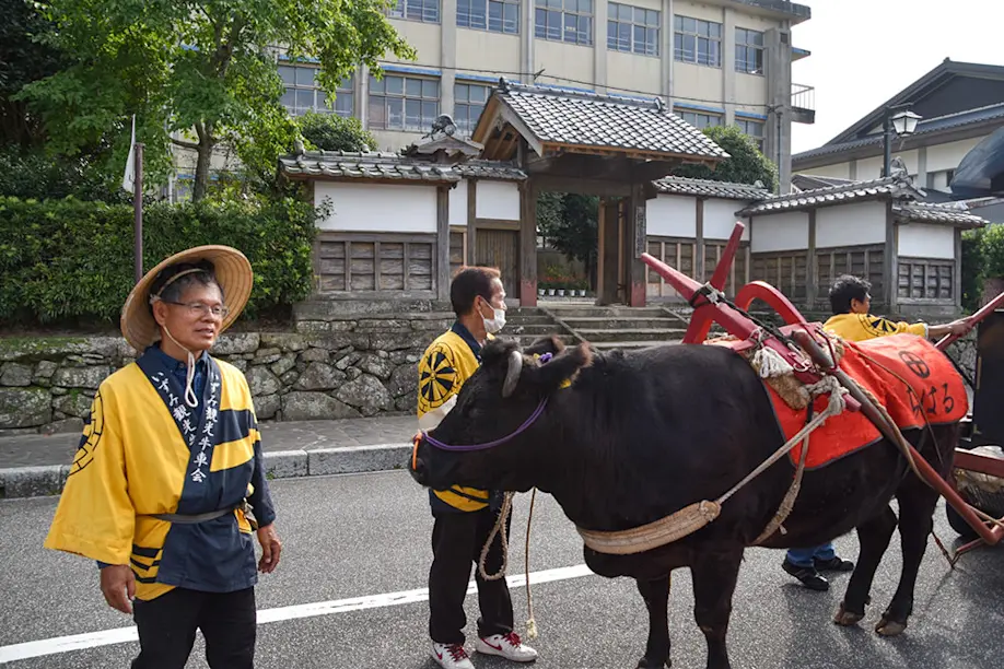 One of the greatest joys of visiting Izumi-Fumoto is simply strolling the picturesque streets, like the main street Nodago Historical Road, snapping photos and admiring the carefully preserved houses. However, if you want to take a rest and admire the landscape from a different angle, there's always the option to hop on the impossible-to-miss ox-cart, which runs regular leisurely tours throughout the day.