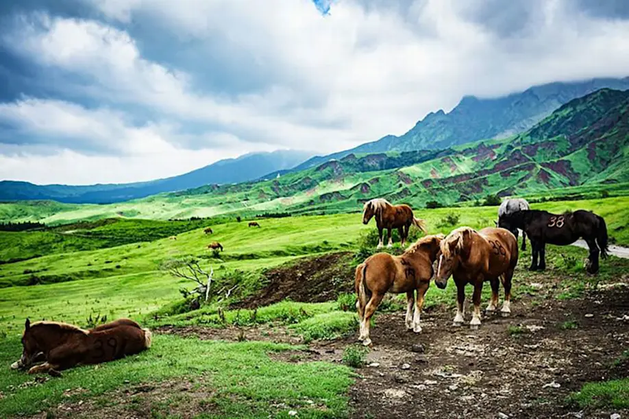 It is said the face of Kyushu changes for every season, and perhaps the island shows its best side during spring and autumn. In late March and early April the whole of Japan is awash in its famous cherry blossoms, and Kyushu is no different. Nishi Park in Fukuoka City comes alive with over 3,000 cherry trees representing multiple varieties. Shrine maidens at Tashiro Park in Saga prefecture put on a traditional dance under the cherry blossoms. Omura Park in Nagasaki prefecture was built over the dried moat of castle ruins and filled with 300 cherry trees. The sacred cherry blossom of Heike is located at the top of Mount Tenboko overlooking the Kanamegawa river, the site of the final battle between two warring clans. It is believed the tree harbors the souls of the defeated Heike clan. Perhaps Kyushu's most famous cherry blossom viewing location is Kumamoto Castle. The view from the top of the main tower is spectacular, and the trees are lit up after sunset, making it the perfect night-time picnic spot. In the fall months stroll along the walking paths of Mount Kiyomizu, located between Fukuoka and Kumamoto, when the maple leaves are especially beautiful. Kunenan Mansion in Saga Prefecture, the former retreat of a local businessman, is open to the public for only nine days in November – the best season for autumn leaves. Kuju Flower Park, nestled in the gorgeous mountain scenery, is in full bloom no matter the season, featuring tulips in spring, lavender in summer and cosmos in fall.