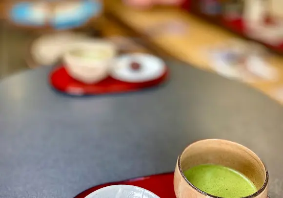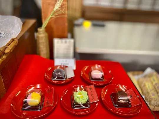 On your way out of Karatsu, stop by Kaikaido, a family-run shop specializing in matcha green tea, traditional Japanese confectionery, and Karatsu-style ceramics since 1898. Select your choice of sweets from among an array of tastes designed to match the season. During our visit, the flavors on offer included chrysanthemum, along with both savory and sweet chestnut.