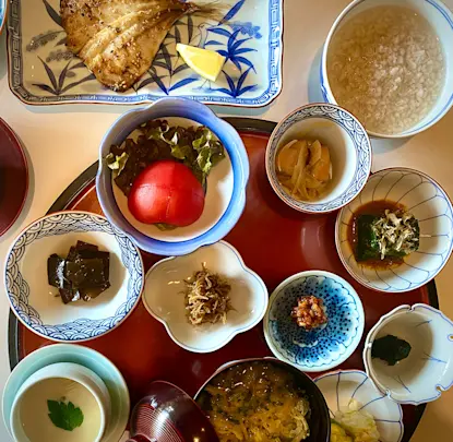 Chat after breakfast with your hosts, the Okochis, a warm family who are eager to greet guests and recount the inn’s long and fascinating history of welcoming overseas visitors. Browse Yoyokaku’s onsite collection of Karatsu-style porcelain wares crafted by local potter Takashi Nakazato and his children. His daughter Hanako, who divides her time between nearby Mirukashi and Maine in the U.S., has developed a unique style rooted in Karatsu techniques that features her own creative twist.