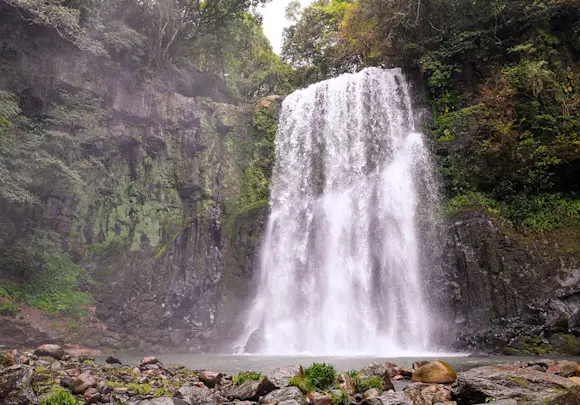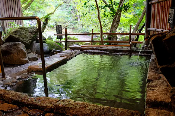 Make your way from Saga to Hita, Oita prefecture to the lovely forested hot springs town of Amagase Onsen, which joins Beppu and Yufuin to form the trifecta of top onsen bathing destinations in the Bungo region. Many of the baths offer mixed bathing (i.e., not segregated by gender), and you’ll also find tattoo-friendly onsen and those with private baths. Consider staying in a ryokan with atmospheric river and waterfall views.