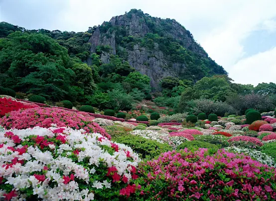 Explore the charming streets of Arita, and visit Sueyama Jinja Shrine, near Kami Arita Station. The torii gates, lanterns, even the ema (plaques for writing wishes), are made from blue and white porcelain. Relax at nearby Takeo Onsen , a 1300-year-old hot spring town with a mix of traditional inns, modern hotels and public hot springs. Visit the spectacular Mifuneyama Rakuen Gardens nearby, with walking trails around the mountain and lake. You can stay at the luxurious on-site inn, Onyado Chikurintei.