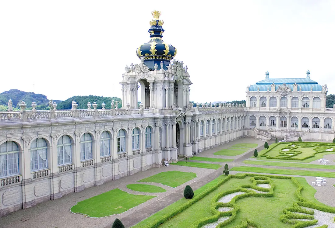 This palatial museum and park in Arita, conveys the history of the town's most famous product. The main attraction is a full-size reconstruction of Germany's Zwinger Palace, a spectacular example of German baroque architecture of the early 18th century. The displays inside the palace and park provide insight into the influence of Arita porcelain on European designs. In the park grounds there is a studio where visitors can try making porcelain, and tours of a sake, shochu (Japanese liquor), and beer brewery. You can make a relaxing day trip, enjoying the restaurants, cafe, and European-style gardens.
