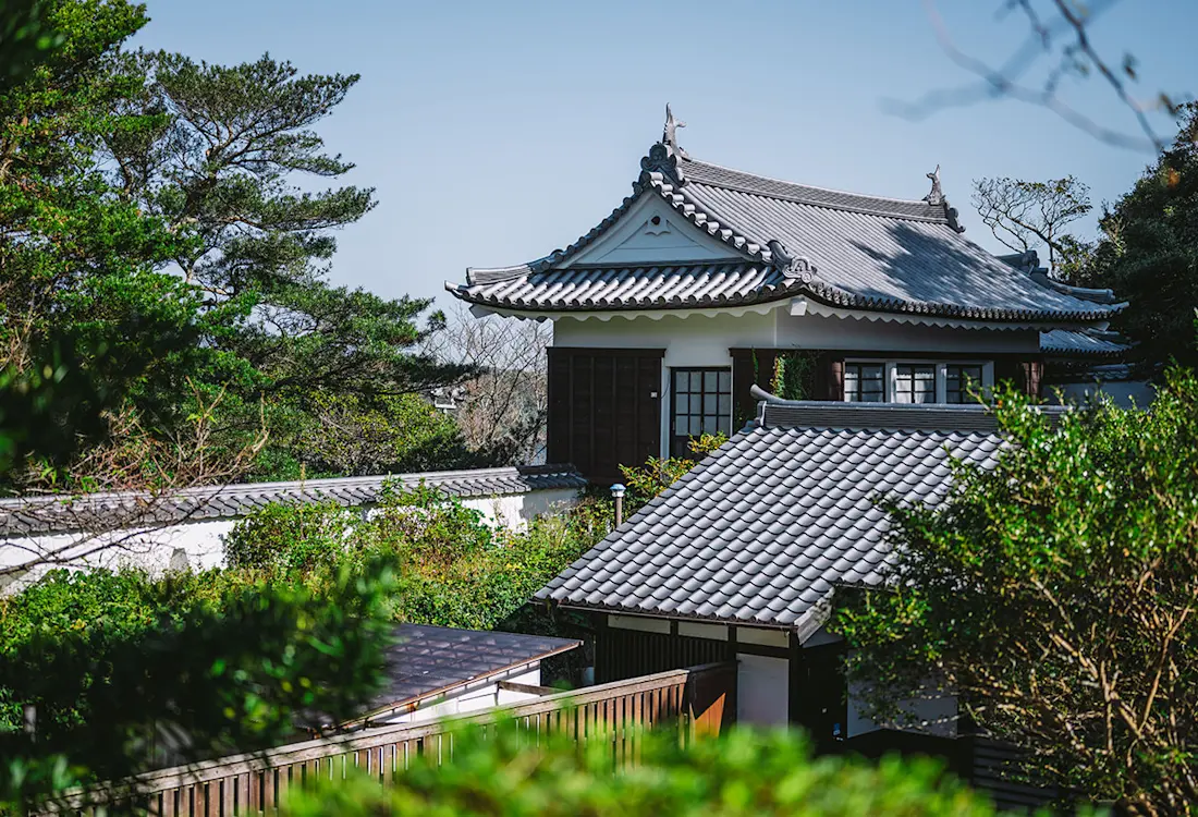 This castle sits atop a hill overlooking the seaside port of Hirado in Nagasaki. Initially constructed in 1599 by the warlord Matsura Shigenobu, he then burnt the castle down in 1613 as a gesture of contrition after being on the losing side of the Battle of Sekigahara.